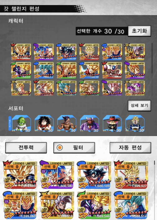 보유 중인 캐릭터 중 30명을 골라 출격하는 총력전입니다!