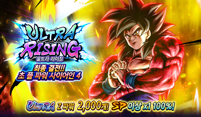 ULTRA '초 풀 파워 사이어인 4 손오공' 미획득 시 600회째에 대상 Z 파워를 100% 획득할 수 있습니다!이번 기회는 첫 진행 한정입니다! 놓치지 마세요!